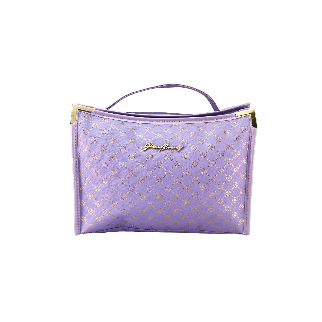 deze tas is verkrijgbaar in twee kleuren, zacht roze en paars. De kleuren zijn erg subtiel, vrouwelijk en passen bij elke stijl. Op de toilettas zit een mooi schakelmotief in het goud, geschikt voor elke gelegenheid.